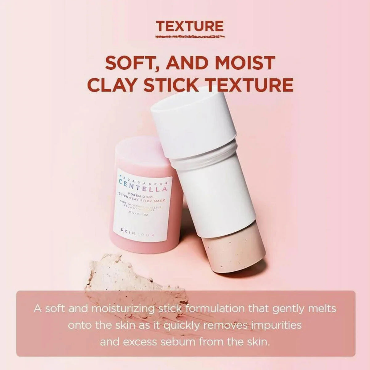 SKIN1004 Madagascar Centella Poremizing Quick Clay Stick Mask is a convenient, mess-free clay stick mask formulated to target enlarged pores and excess sebum. Infused with SKIN1004’s signature Madagascar Centella Asiatica and pink clay, this mask helps purify pores, soothe irritation.